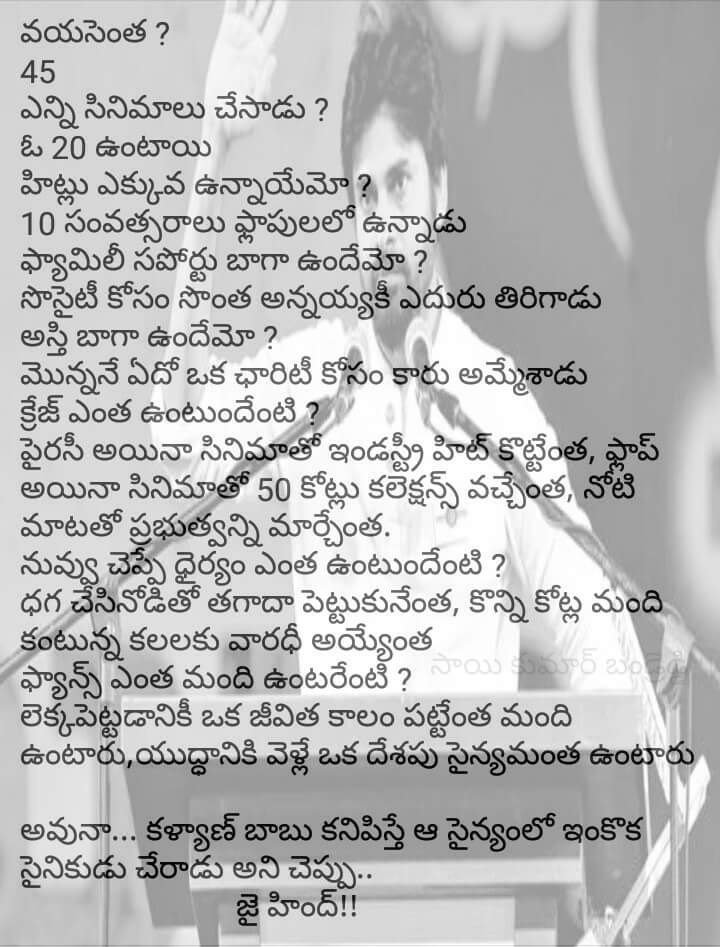 Before I write about the impact of Jana Sena currently and even in future, we have to know about the man behind it and the image he is carrying.